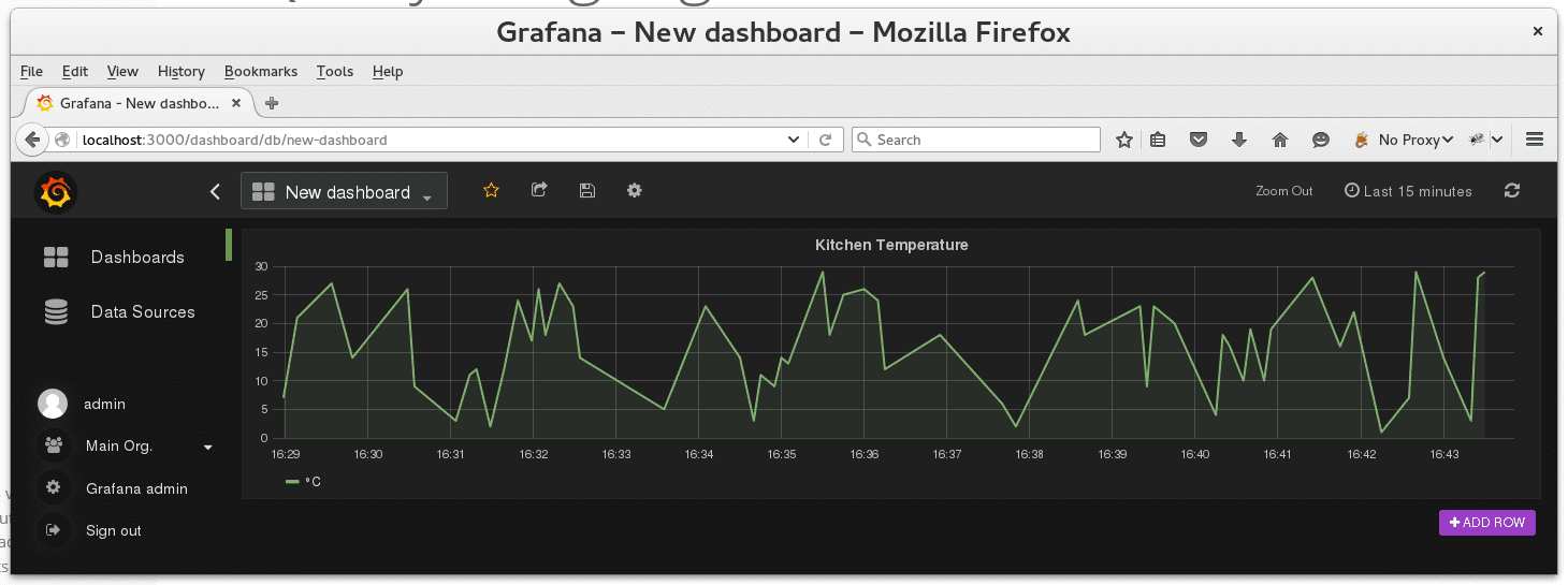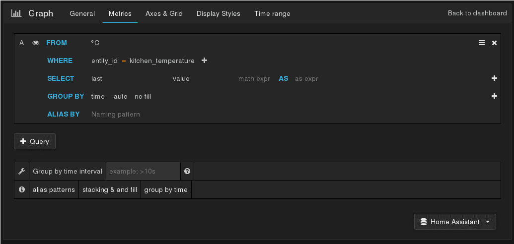 Now you can start to create dashboards and graphs. You have various options to get the data from the graph. The next image just shows a screenshot of the setting for a temperature sensor.