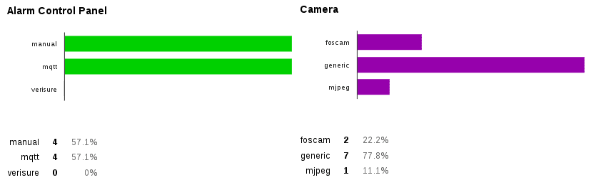 The Alarm control panels and the camera component are both used by around one third of the participants of the survey. It’s safe to say that they cover a niche, but they will gain momentum when people discover how they can build alarm systems with Home Assistant.
