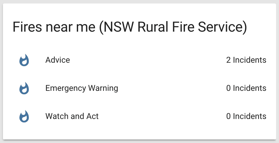 This is an example configuration showing bush fire incidents from the NSW Rural Fire Service.