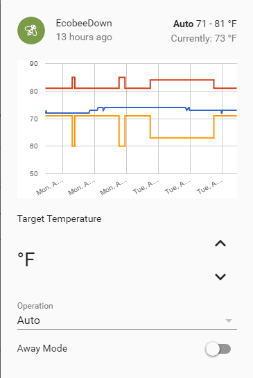 The ecobee integrationIntegrations connect and integrate Home Assistant with your devices, services, and more. [Learn more] lets you control and view sensor data from ecobee thermostats.