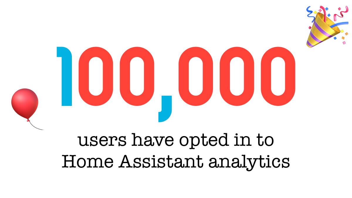 Today we have reached a major milestone for Home Assistant Analytics: 100,000 users have opted in to be included!