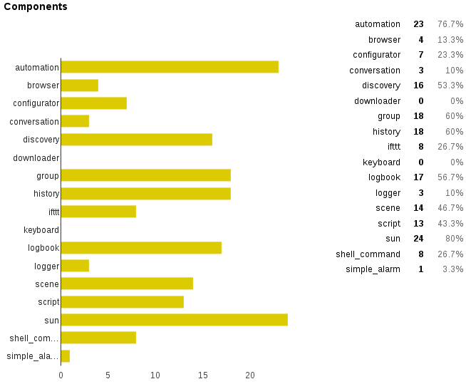 Of course most users are running with the automation component otherwise it would make much sense to use Home Assistant. The sun component is used a lot too. We hope that this is not because this component is enabled by default.
